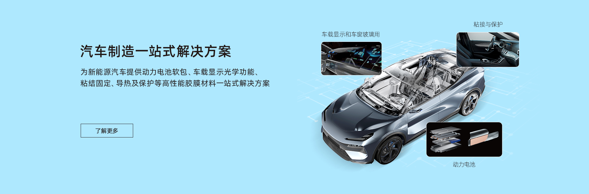 為新能源汽車(chē)制造、消費(fèi)電子、智慧顯示等行業(yè)客戶(hù)提供高性能膠膜材料的新材料企業(yè)